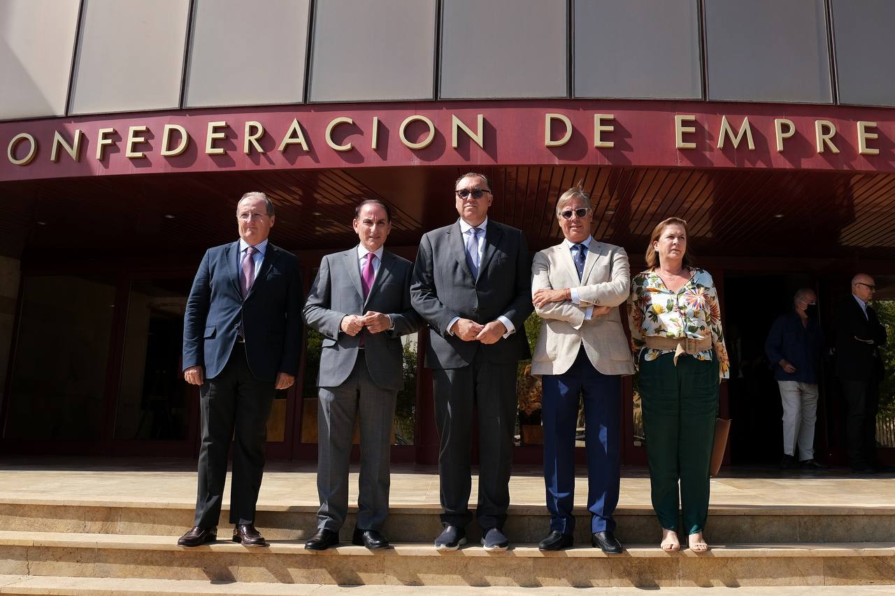 El consejero de Turismo, Cultura y Deporte, Arturo Bernal, ha mantenido esta mañana un encuentro con el presidente de la Confederación de Empresarios de Andalucía (CEA), Javier González Lara, para intercambiar y poner en común los retos que, en materia de Turismo, Cultura y Deporte, se afrontarán durante esta nueva legislatura, y para los que ambas partes se han mostrado colaborativos.