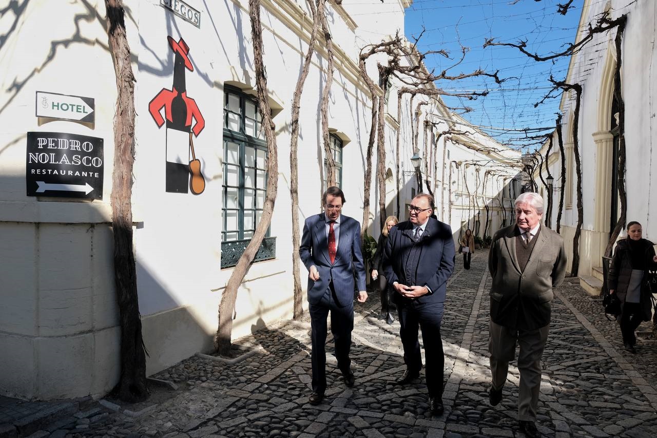 La de Tío Pepe es, no en vano, la principal empresa bodeguera del marco de Jerez, el 50% de sus vinos se exporta a más de 100 países, y ha sabido diversificar su oferta, no solo de caldos, sino de propuestas que refuerzan el vínculo entre enogastronomía, turismo y cultura. En este sentido, Bernal ha destacado la relevancia de propuestas como los festivales de música que la bodega organiza cada verano (con presencia de artistas de la talla de José Mercé, Joan Manuel Serrat, Sara Baras o Plácido Domingo) o la Pasarela Flamenca que se celebra estos días en las instalaciones jerezanas. Además, González Byass cuenta, dentro del complejo de sus bodegas, “con diversos espacios que suman atractivo y aportan calidad al destino Andalucía”, ha destacado Bernal. El consejero ha recordado que el complejo de estas bodegas jerezanas encierra unos valiosos jardines, inscritos no en vano en el Catálogo General de Patrimonio Histórico Andaluz, o diversas calles donde se encontraban las antiguas casas de los trabajadores del siglo XIX, que ahora forman parte del conjunto visitable, entre las que destaca la calle Ciegos, valorada como una de las más bonitas del mundo y la primera española en el ránking del portal británico Getagent. En este entorno se sitúan, además, un hotel boutique (el primero en el interior de una bodega) y el restaurante.