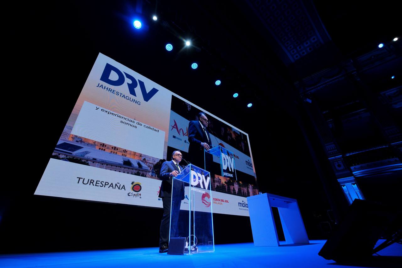 El consejero de Turismo y Andalucía Exterior, Arturo Bernal, ha participado hoy en Málaga en la apertura del congreso de la asociación de agencias de viajes de Alemania DRV, profesionales ante los que el destino se muestra como "referente del nuevo modelo de turismo sostenible, regenerativo e inteligente".