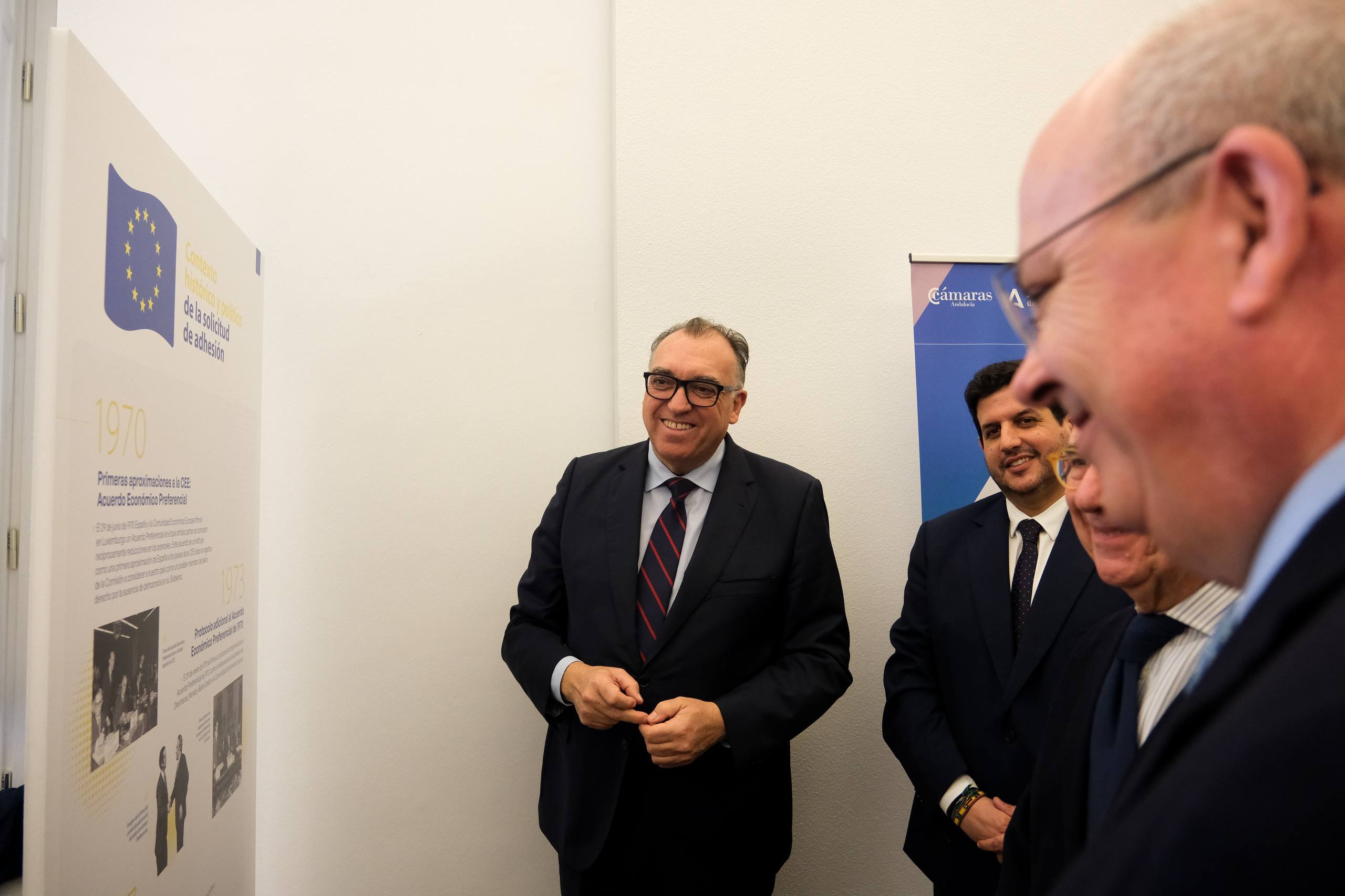 Así lo ha resaltado en Sevilla la inauguración de la exposición ‘Andalucía, 40 años creciendo en Europa: del tratado a la transformación’, junto con el presidente del Consejo Andaluz de Cámaras de Comercio, Javier Sánchez, y el presidente de la Cámara de Comercio de Sevilla, Francisco Herrero, entre otras autoridades.