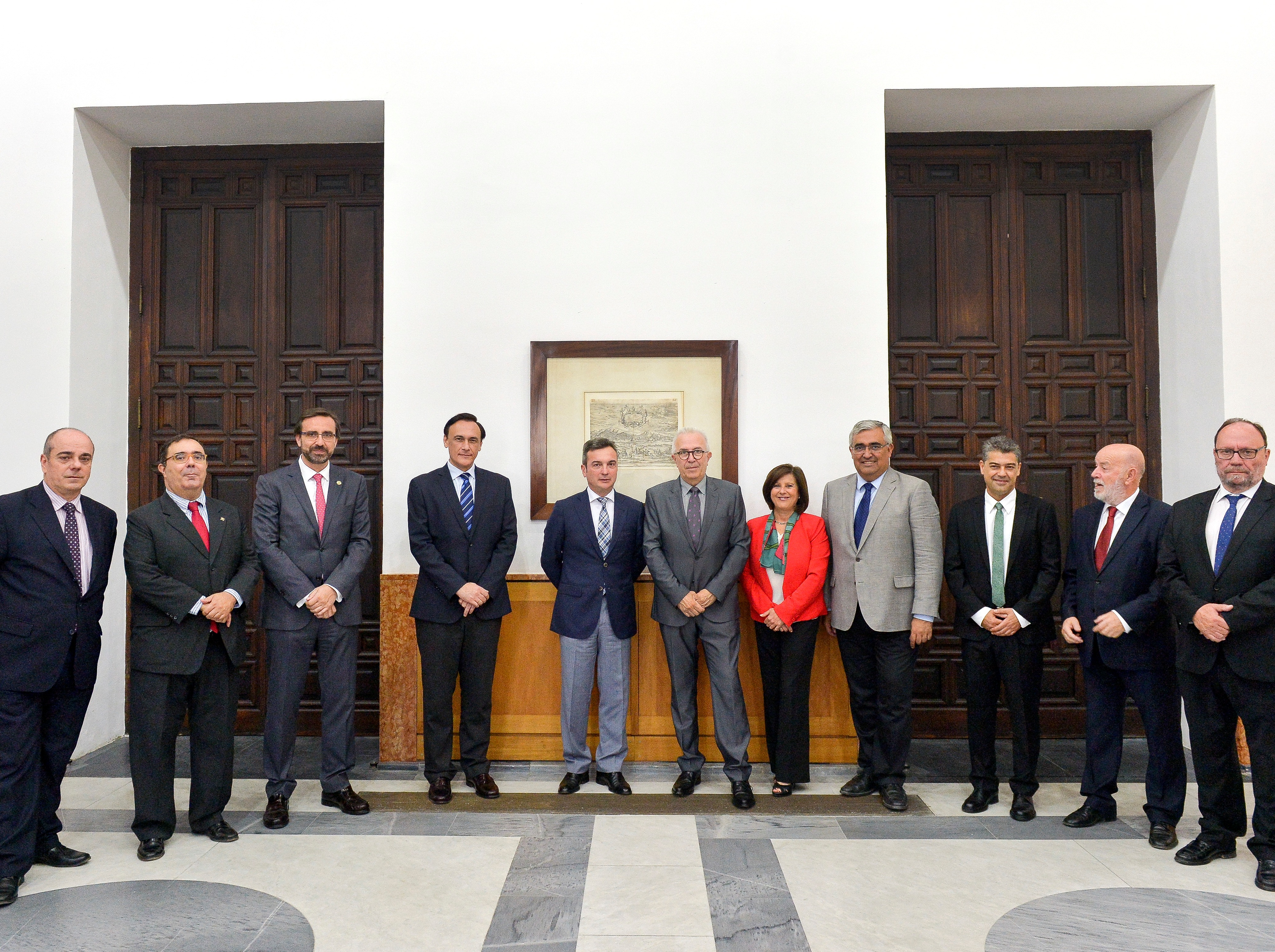 Los consejeros de Economía y Salud, junto a los rectores andaluces.
