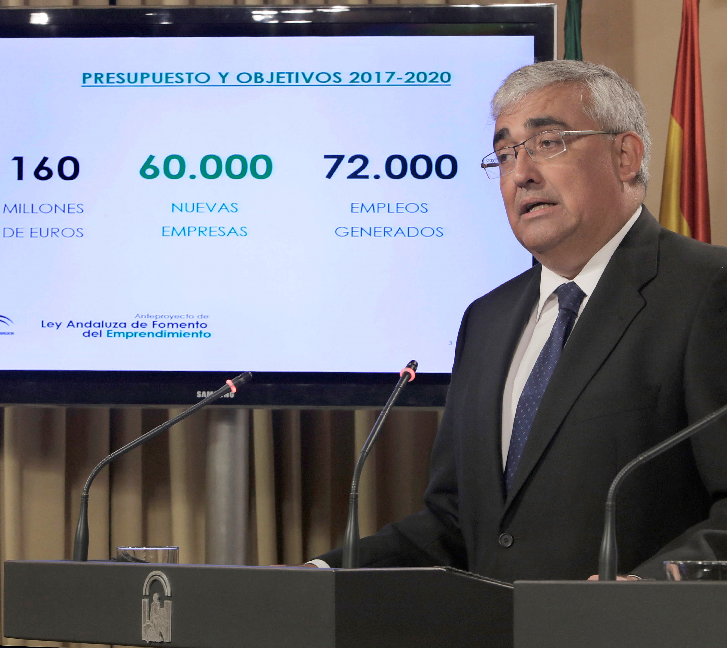 El Consejo de Gobierno ha iniciado los trámites del anteproyecto de la Ley Andaluza de Fomento del Emprendimiento, que prevé impulsar entre 2017 y 2020 la creación de unas 60.000 nuevas empresas y generar en torno a 72.000 empleos. El texto, que en su memoria económica consigna un presupuesto de 160 millones de euros para esos cuatro años, establece como principal novedad la garantía legal del derecho de las personas a desarrollar iniciativas empresariales en igualdad de oportunidades. Bajo este principio básico, incluye una amplia serie de medidas dirigidas a incentivar el valor social del emprendimiento como base del desarrollo personal, profesional y económico.