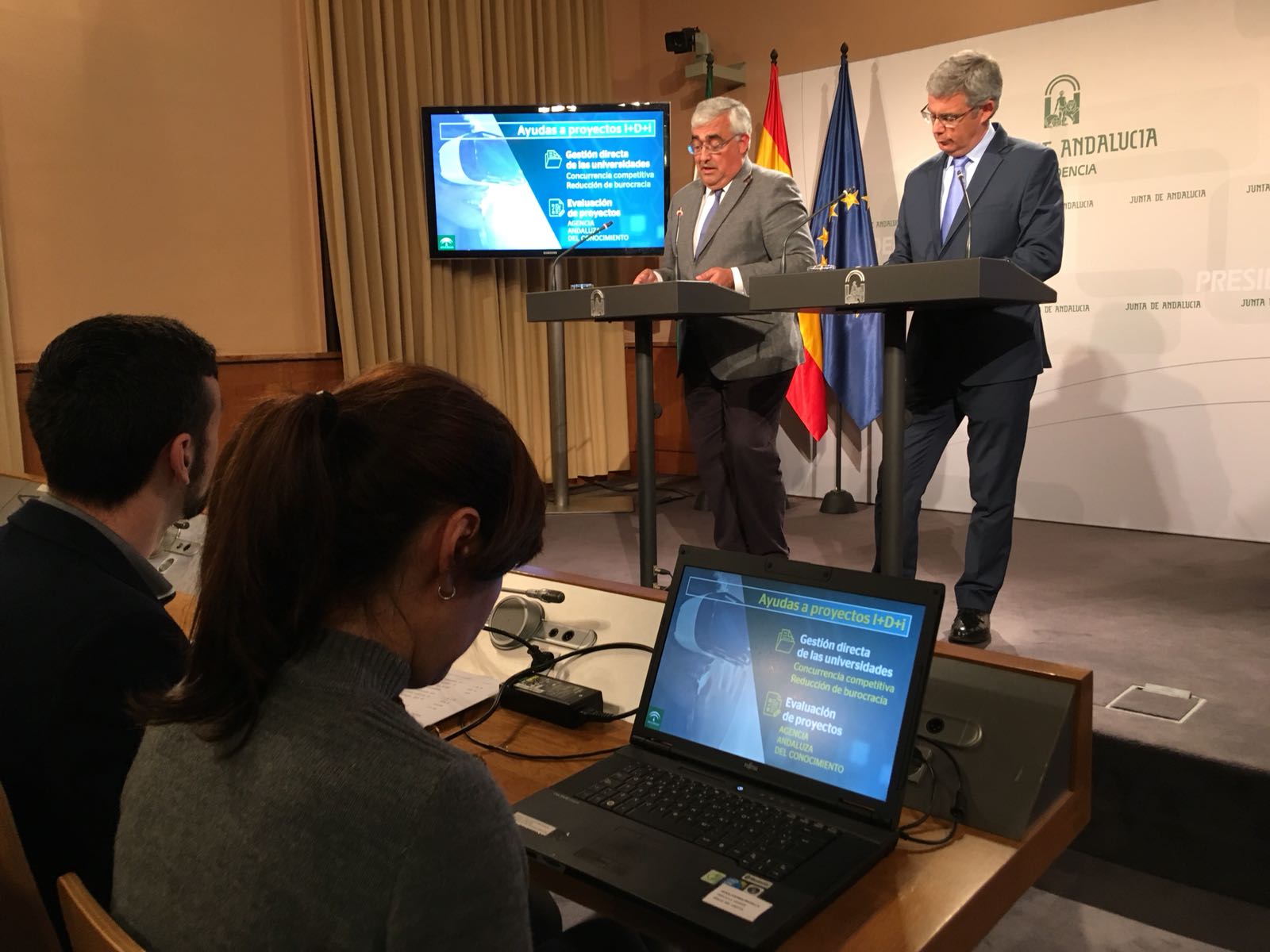 La Junta de Andalucía y las Universidades Públicas de Andalucía destinarán 70 millones de euros hasta 2021 en ayudas a proyectos de I+D+i aplicada. El consejero de Economía y Conocimiento, Antonio Ramírez de Arellano, ha informado hoy al Consejo de Gobierno de las primeras convocatorias de estos incentivos, abiertas en las últimas semanas con una dotación total de 35,8 millones de euros y un plazo de solicitud hasta el 15 de mayo.