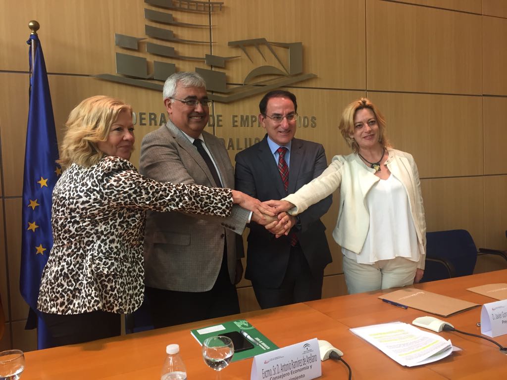 Ramírez de Arellano ha explicado que este acuerdo, suscrito por la directora gerente de Andalucía Emprende, Montserrat Reyes, y el presidente de la Confederación de Empresarios de Andalucía, Javier González de Lara, “entronca con la nueva Ley de Fomento del Emprendimiento de Andalucía, que insiste en la imprescindible colaboración de un sistema público, que garantiza un nuevo conjunto de derechos de los andaluces a ser ayudado en las iniciativas emprendedoras, con la iniciativa privada y todos los actores que tienen interés en el emprendimiento”.