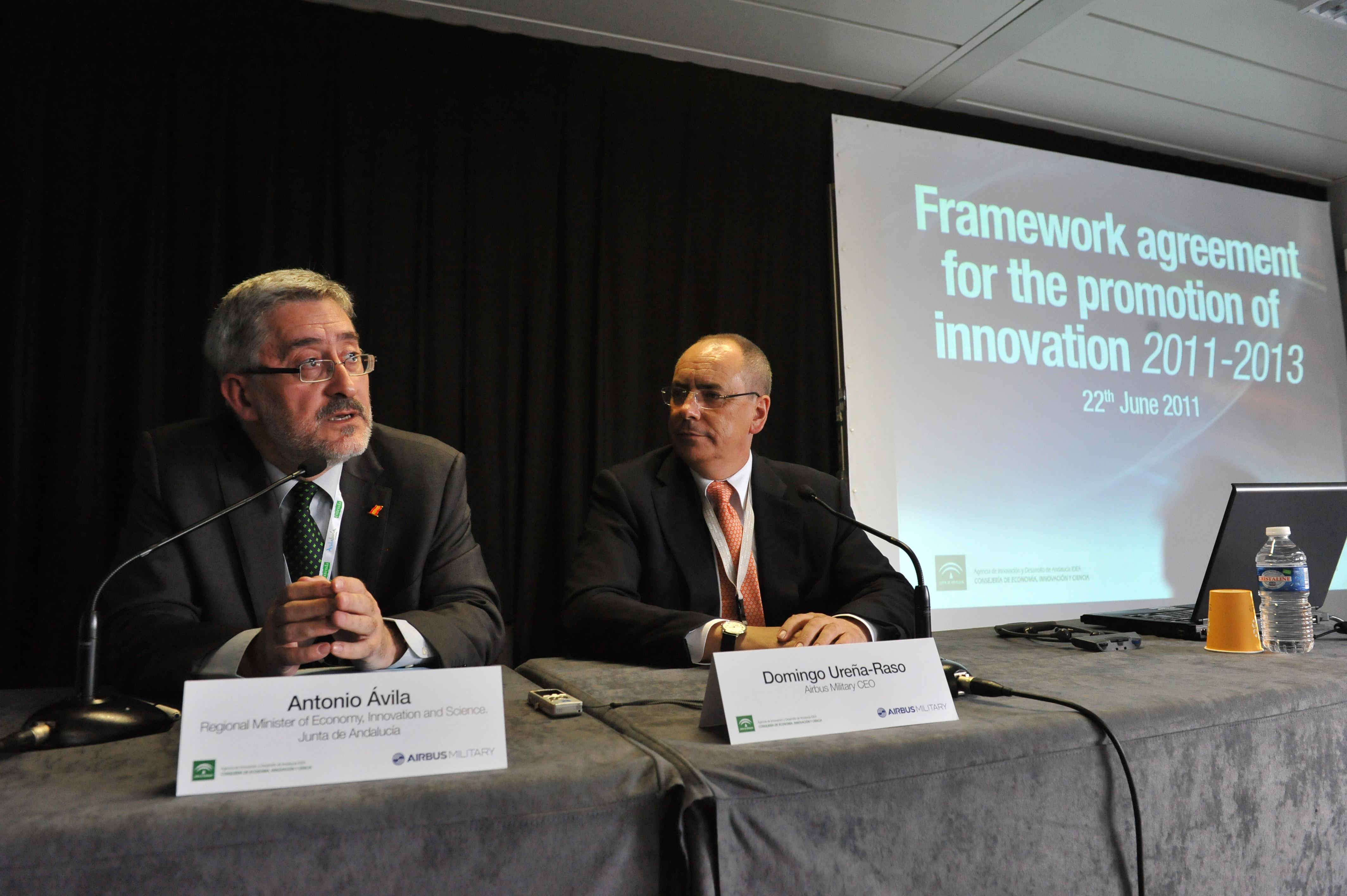 El consejero de Economía, Antonio Ávila, junto al presidente de Airbus Military, Domingo Ureña.