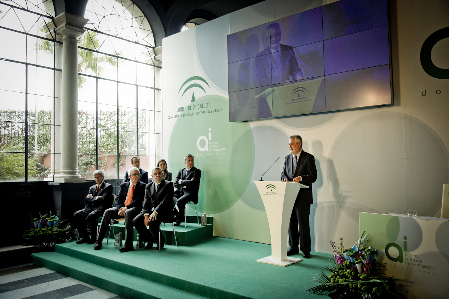 El presidente de la Junta de Andalucía, José Antonio Griñán, ha presidido hoy en Sevilla la entrega de los Premios Andalucía de Investigación 2010, convocados por la Consejería de Economía, Innovación y Ciencia y con los que se reconoce a los investigadores que más han destacado en el ámbito científico, así como a los organismos, instituciones o empresas que se hayan distinguido por su compromiso con el fomento de la investigación científica.
