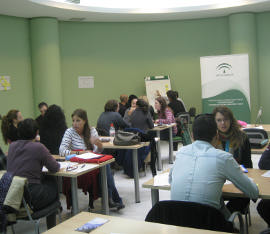 Imagen de una dinámica de trabajo en las jornadas de formación básica del Proyecto Lunar Almería realizadas en el CADE de Almería.