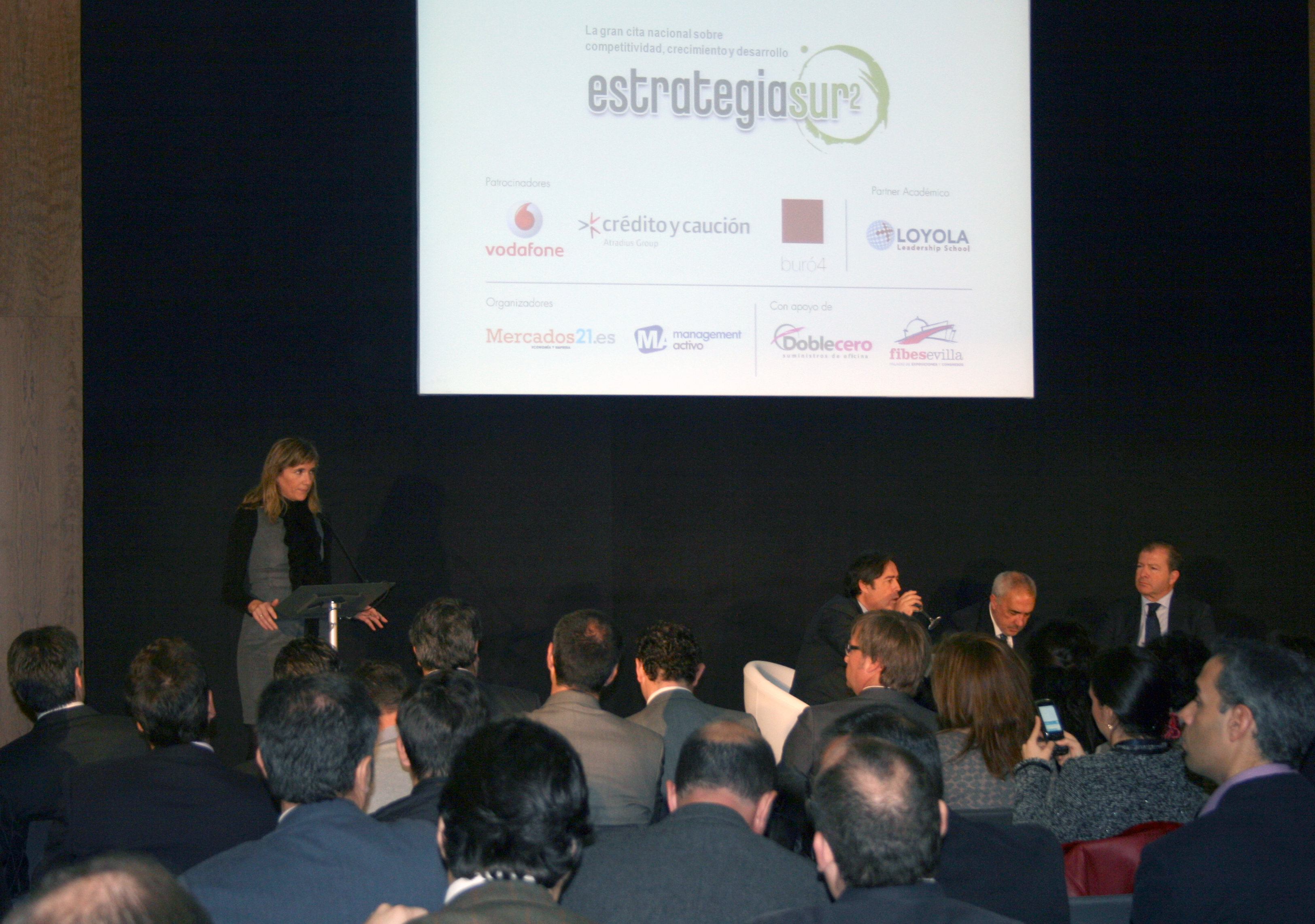 La directora general de Autónomos de la consejería de Economía, Inno-vación, Ciencia y Empleo de la Junta, Vanessa Bernad, ha inaugurado hoy en Sevilla la primera edición del Foro Estrategia Sur sobre competitividad, desarrollo y crecimiento, un encuentro organizado por la plataforma de comunicación Mercados 21 y por la firma andaluza Management Activo, que nace con vocación nacional para promover el diálogo, la reflexión, el análisis y el intercambio de experiencias en los ámbitos de la economía y la empresa, teniendo como referente a empresas locales y a personalidades de reconocido prestigio del mundo empresarial, económico y social.