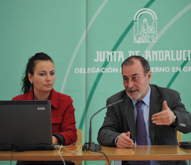 El delegado territorial de Granada, José Antonio Aparicio, y la directora provincial del Cade, Inmaculada López, en la presentación del Plan Provincial de los Cade 2013 en Granada.